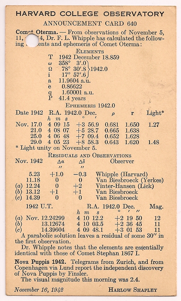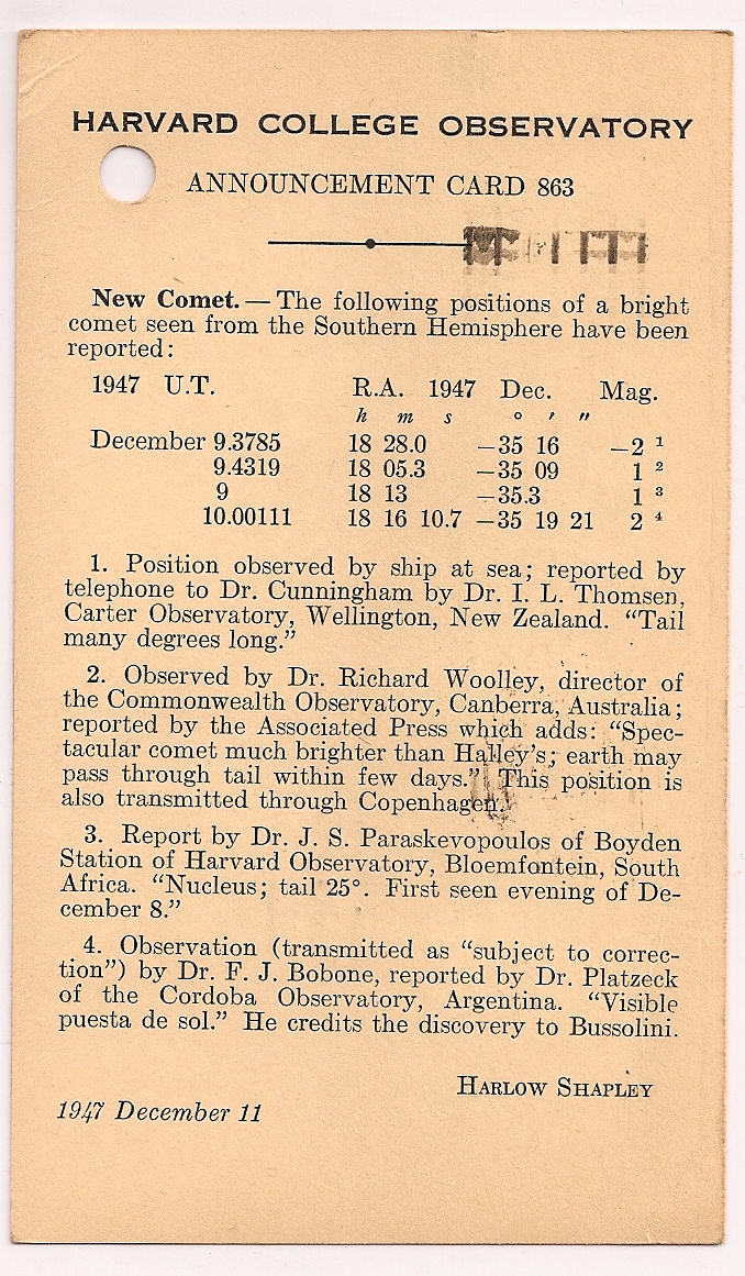 C/1947 X1 appears on HAC 863. The bright eclipse comet C/1948 V1